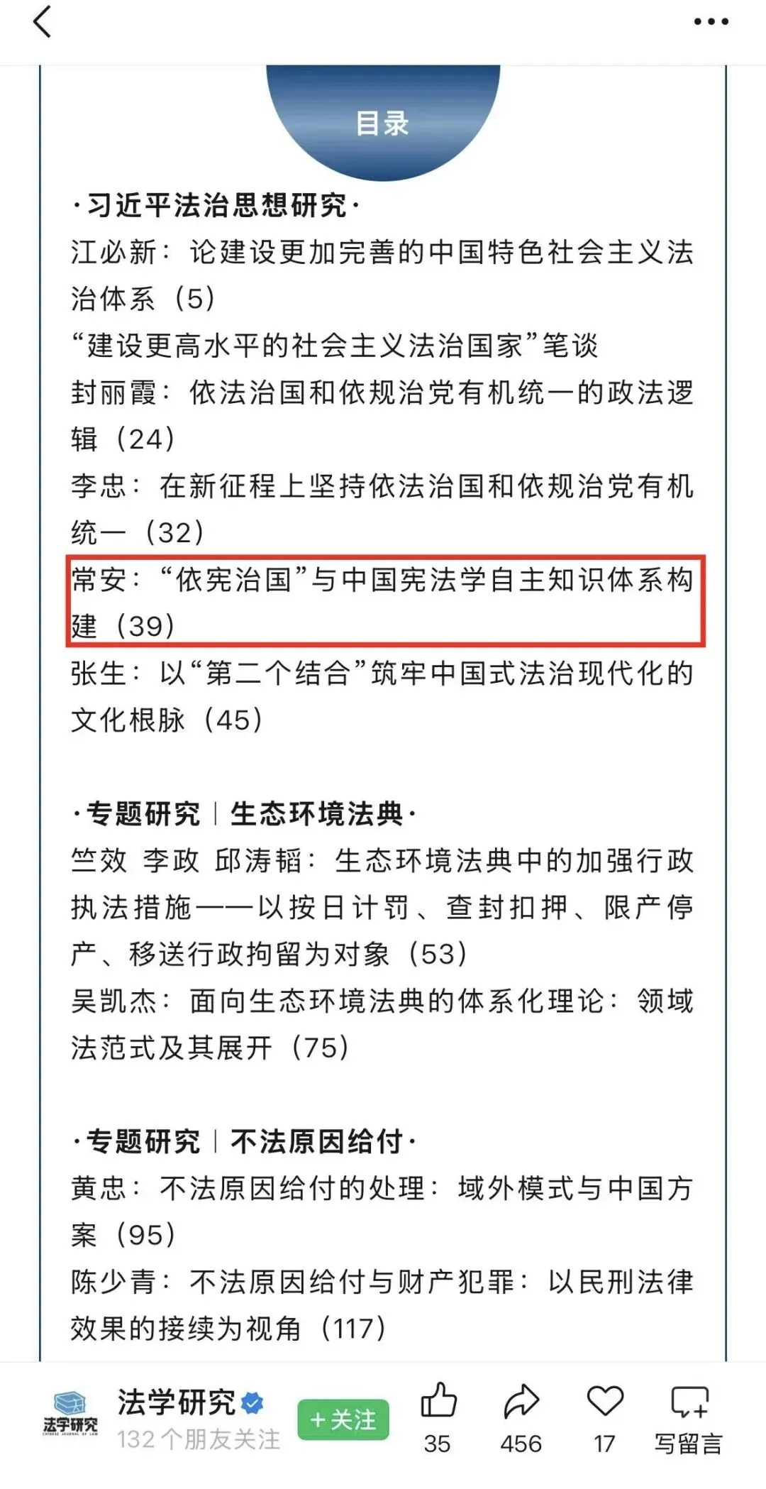近日,我院人权研究中心首席专家常安教授的论文《“依宪治国”与中国宪法学自主知识体系构建》在《法学研究》发表。
