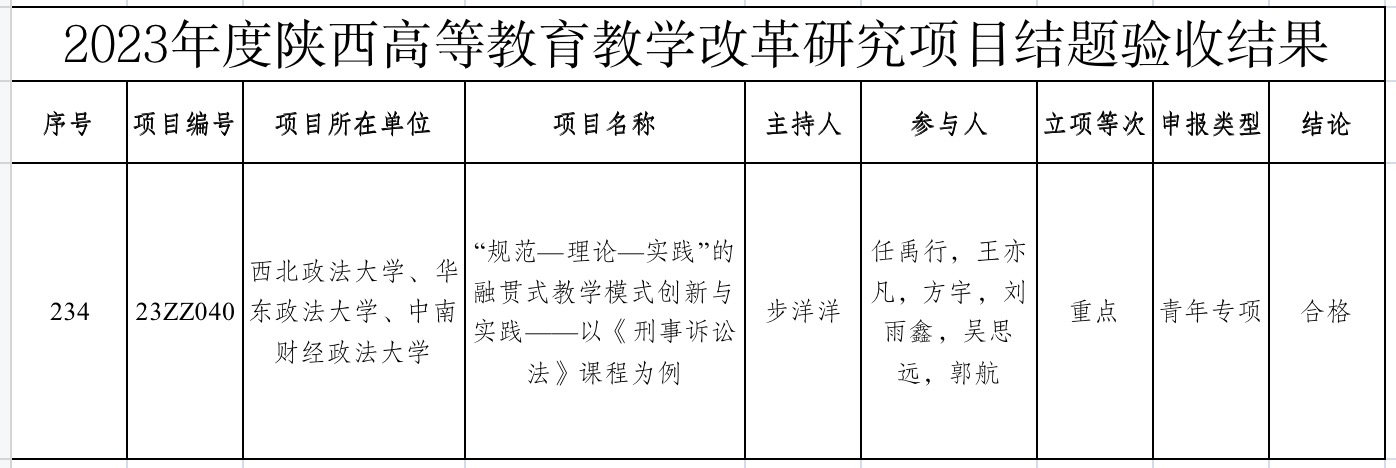 中心步洋洋教授主持的 “规范—理论—实践”的融贯式教学模式创新与实践——以《刑事诉讼法》课程为例 顺利通过验收。
